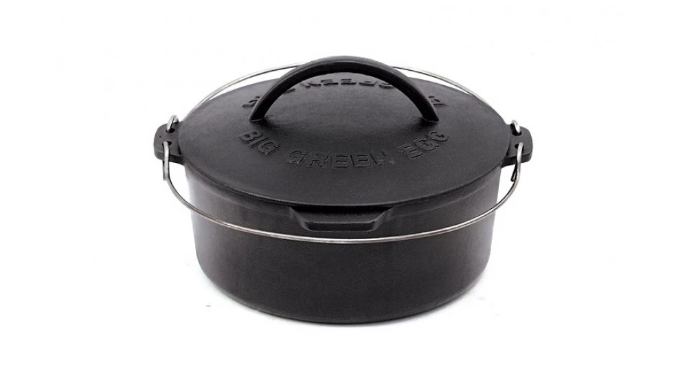 Professional Grade Cast Iron Dutch Oven with Lid. Multi-functional and efficient – the traditional Dutch Oven is a favourite for cooking stews, soups, chilli and cobblers on the Big Green Egg. Ideal for simmering, braising, baking, sautéing and roasting, this Dutch Oven will only improve as it ages! Can be used in Medium, Large and XLarge EGGs. 5.2lt capacity