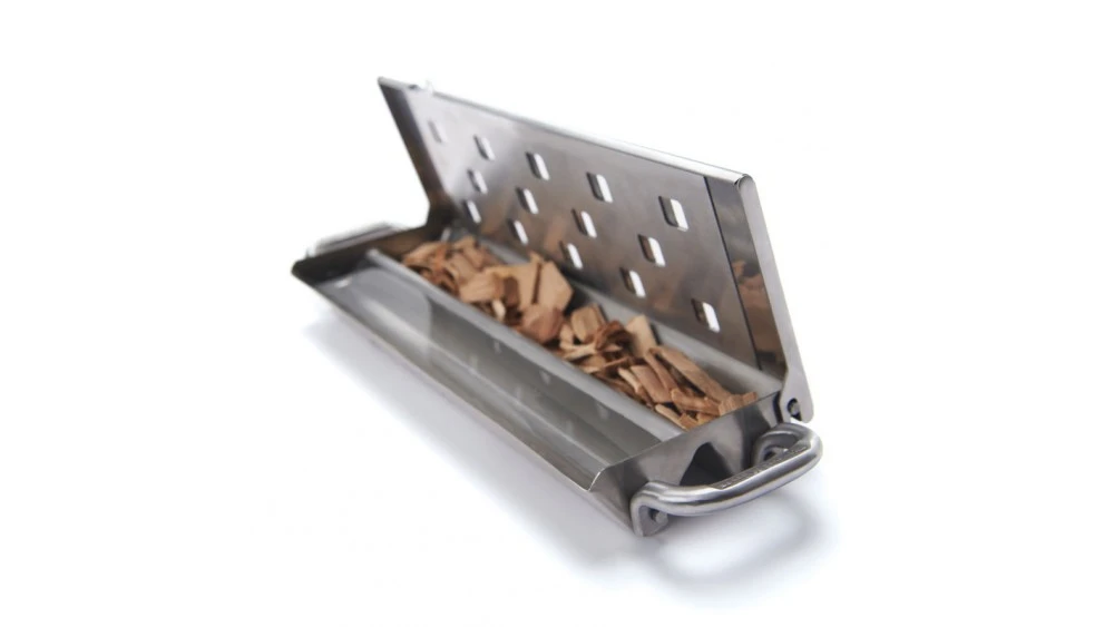 Fully made out of stainless steel designed to sit on-top of your heat-plates or directly ontop of the grill.The air dampener makes sure that air is flowing for maximum smoking! This will also hold the excess liquids for the pre-smoking soak.