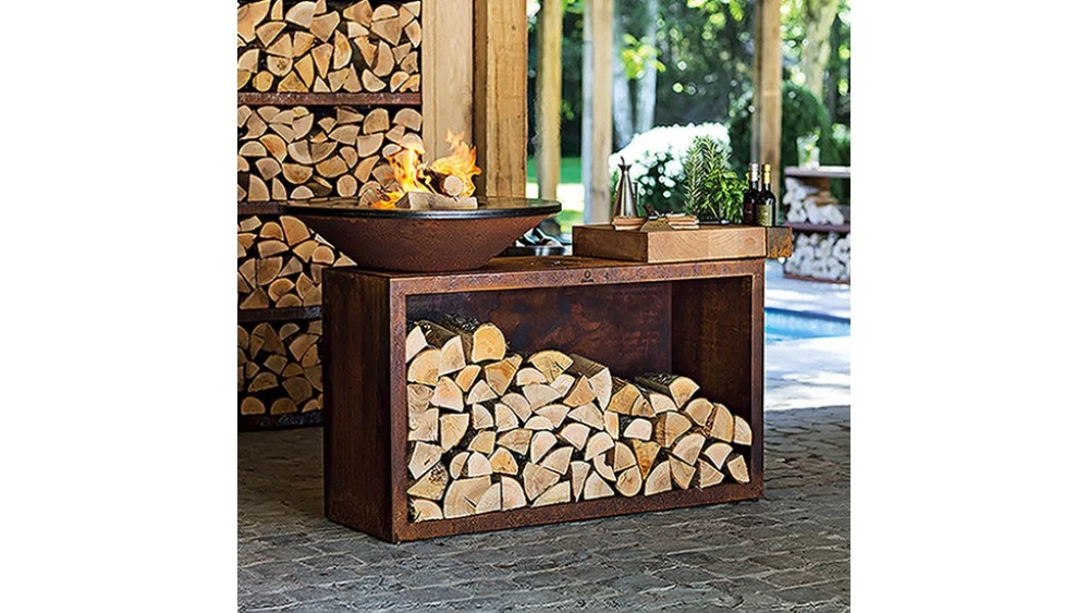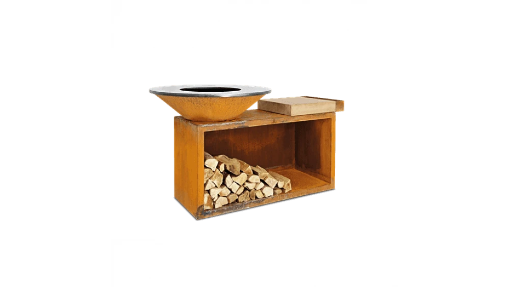 All the style and simplicity of OFYR, with the added convenience of built in wood storage and food preparation surface with wooden butchers block and handy tool tray. The OFYR Island 100 looks fantastic alone or combined with other OFYR units such as the Butcher Block